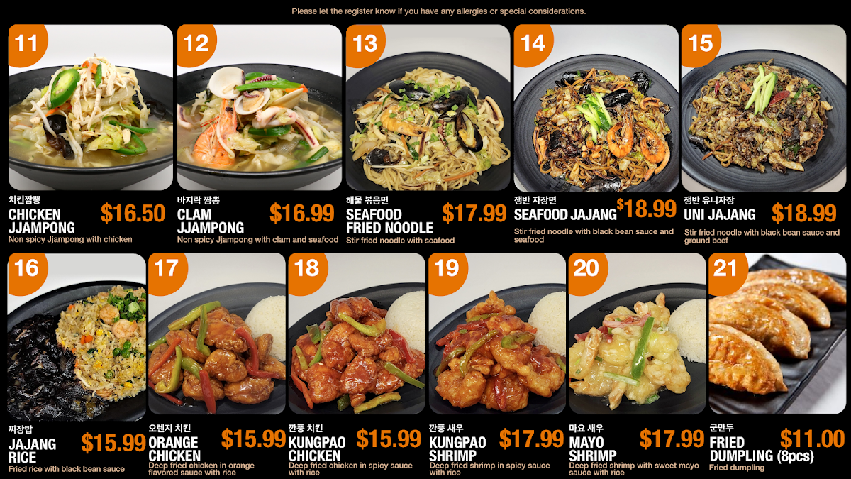 The menu shines with crowd-pleasers such as the jjambbong, a hearty mix of seafood and vegetables that boasts a smoky flavor without overwhelming spice. Diners rave about the chicken jajang, celebrated for its rich, flavorful broth and generous portions—perfect for sharing. For those seeking a unique twist, the Uni Jiajiangmyen offers al dente noodles that are both rich and satisfying, although a bit oily, delivering slurpy goodness in every bite.